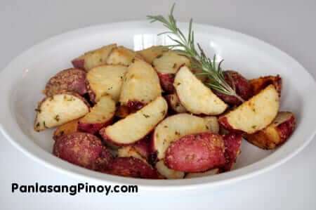 - Place potatoes in an oven safe pan. Coat with the butter mixture