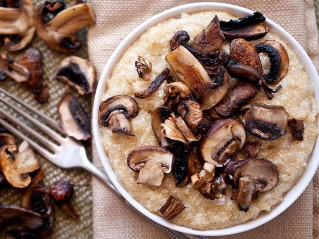 - Place the vegetable broth in a saucepan and bring to a mild simmer, keeping to warm, but not boiling.In a separate pot, toast the dry quinoa, stirring constantly, until you can smell a nutty aroma, about 3 minutes.Remove quinoa from the pot, then add the butter and allow to melt over medium heat. Add the shallots and cook until opaque, but don’t allow to brown. Add the garlic and cook until you can smell it, about 20 seconds. Stir in the quinoa, cooking until it is completely coated with butter. Don’t allow to brown. About 2 minutes.Add the wine and cook until the pan begins to dry, stirring frequently. About 4 minutes.Add a ladle full (about 2/3 cups) of broth into the quinoa. Stir frequently until the broth is almost dry, and then add another ladle full and repeat. This process should take about 15-20 minutes. Don’t leave the risotto while it’s cooking, the quinoa on the bottom of the pan burns easily. If you run out of broth, just use hot water the same way you would broth. If you have made risotto before, just know that the quinoa version will require less broth and cook a bit quicker.Once your risotto is cooked through (taste it to verify that the quinoa is cooked), turn heat to low and add the cheese, cream and salt and pepper to taste. Risotto should be soft and wet, not dry like typical quinoa. It should be firm enough to be served as a side on a plate, but soft enough to jiggle when the plate is shaken. Stir in the mushrooms just before serving.