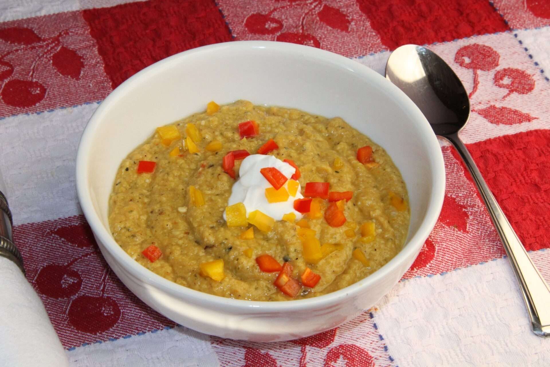 - Serve with a dollop of sour cream and chopped bell peppers. Add a sprinkle of lime juice over the soup.