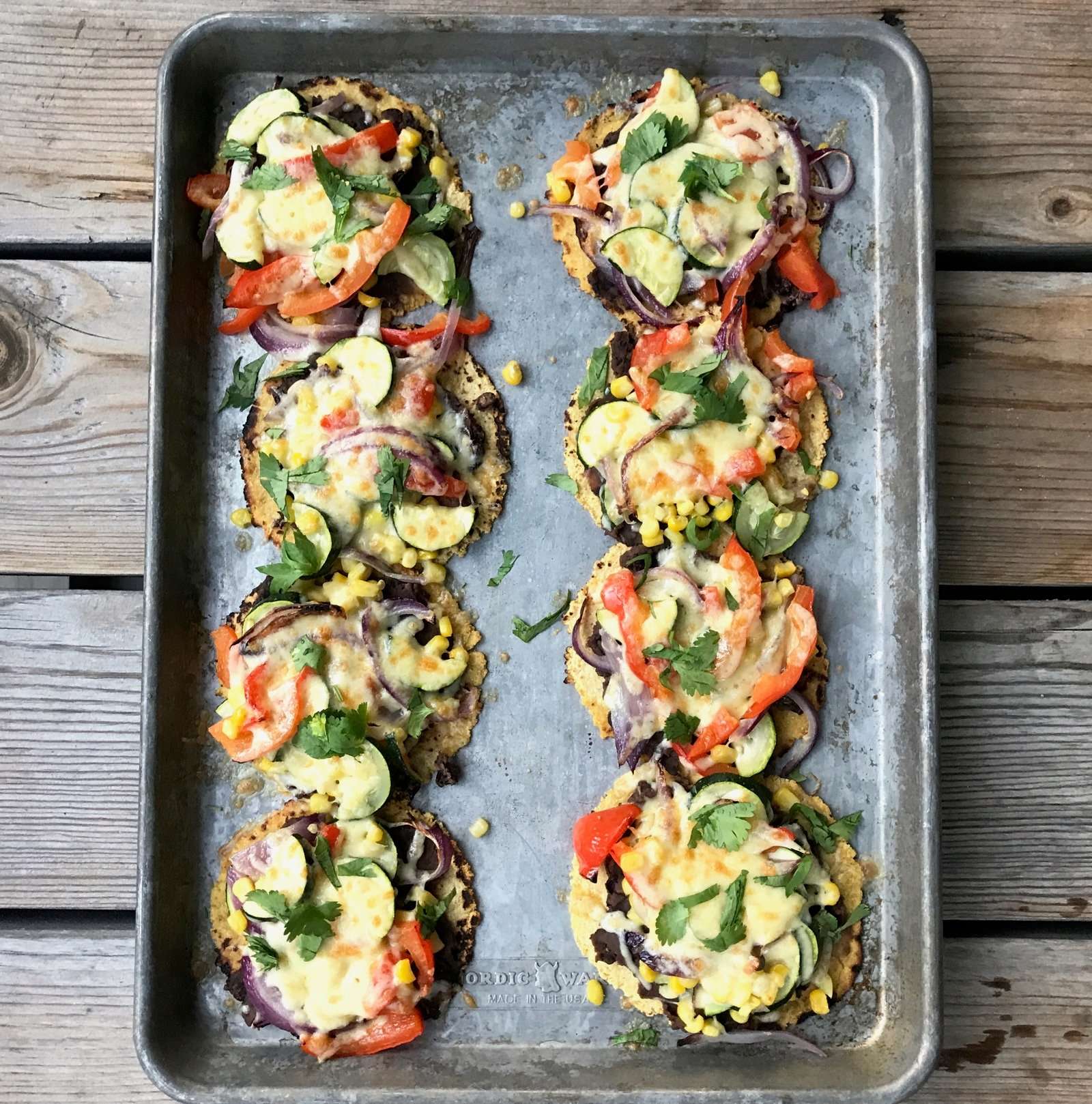 - Put a layer of warm tortillas on a baking sheet. Top them with a smear of black beans, a handful of the veggies and then top off with the grated cheese. Put them under the broiler, just until the cheese melts and begins to turn brown, 1 to 2 minutes (watch it closely). Repeat in batches until all ingredients have been used.