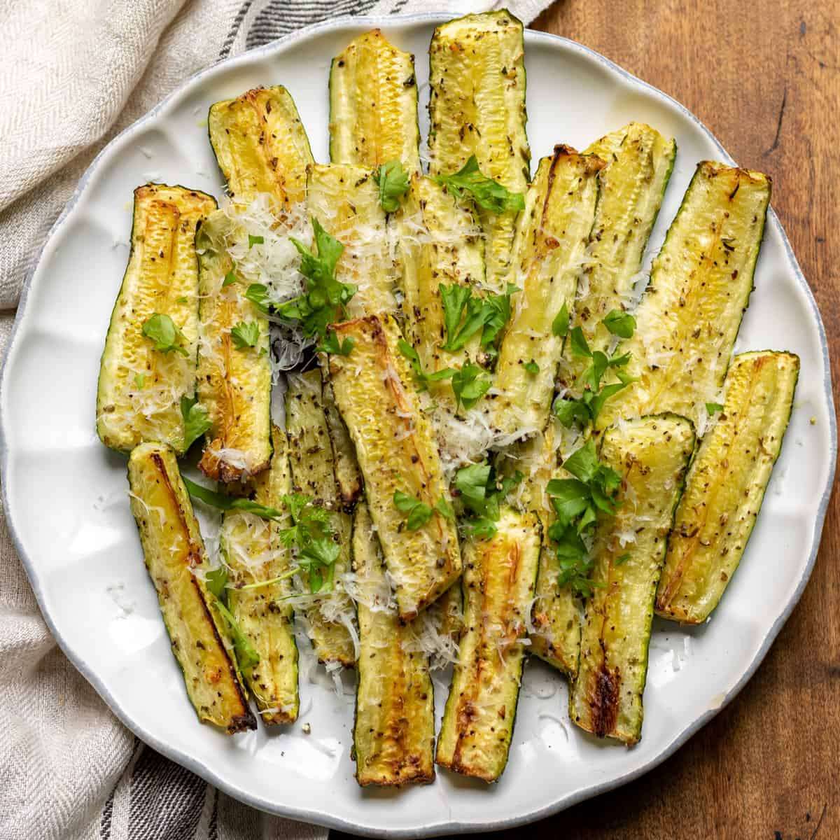 This Roasted Zucchini with parmesan recipe will show you exactly how to bake it in the oven to make it crispy on the outside and not soggy!