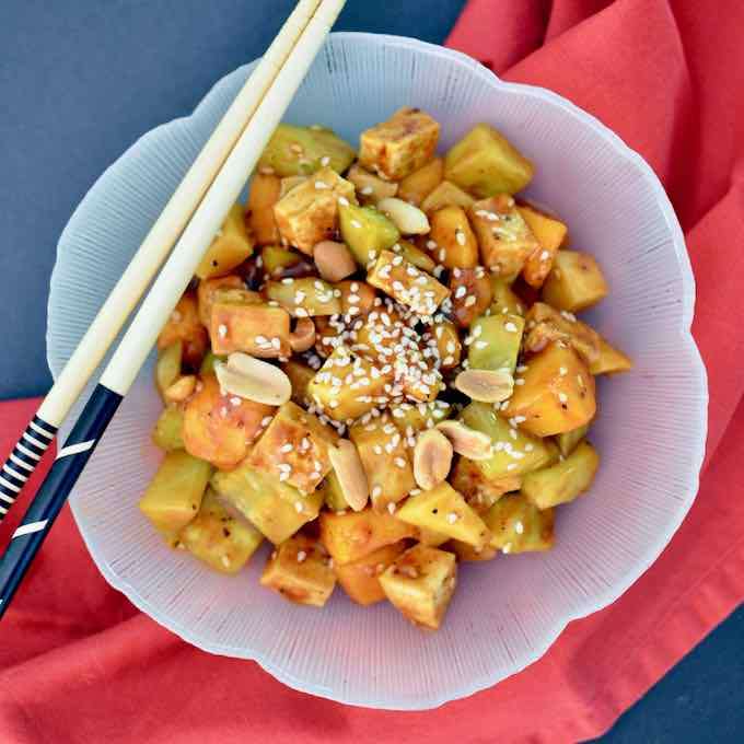 Rojak or rojak mamak in Malaysia and Singapore and rujak in Indonesia, is a traditional salad made with fruits, vegetables, tofu and cuttlefish.