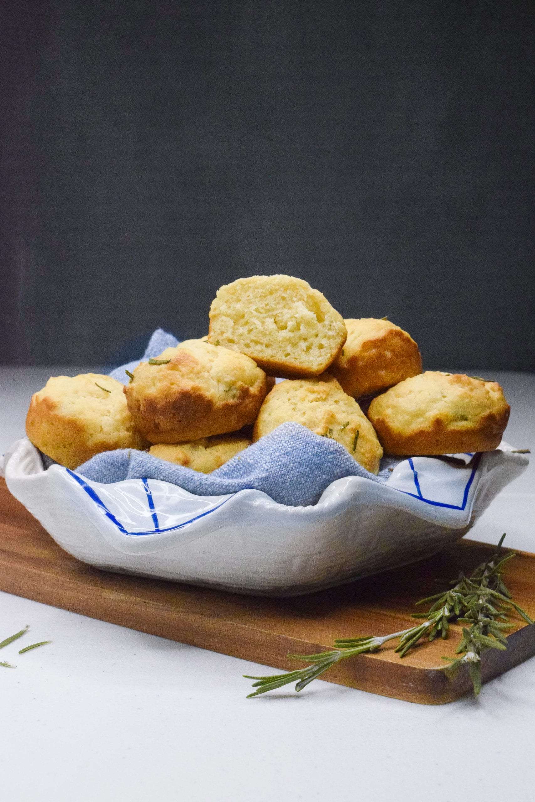 - Whisk the flour, baking powder, salt, corn starch, and rosemary into a large bowl.