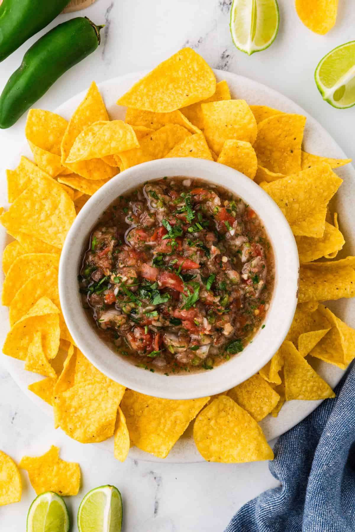 This zesty, spicy, and bright, Homemade Salsa Recipe is a perfect dip to use with tortilla chips and more.