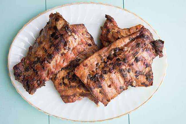 - Option 1: If you want to brown the green onions for a deeper flavour ( shown in my photos) then take the ribs out and place on top of the stove. Pour/brush the oil and garlic mixture over the ribs, then return to the oven. Cook until the onions are the desired flavour. Remove, sprinkle with a little extra salt and serve.