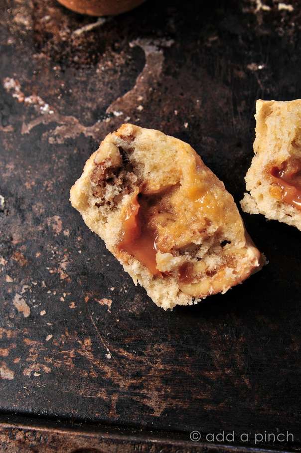 - Bake for 20-25 minutes. Remove from oven and allow to cool for about 3 minutes before removing from muffin tins. Allow to cool further to prevent any issues with the hot melted caramel.