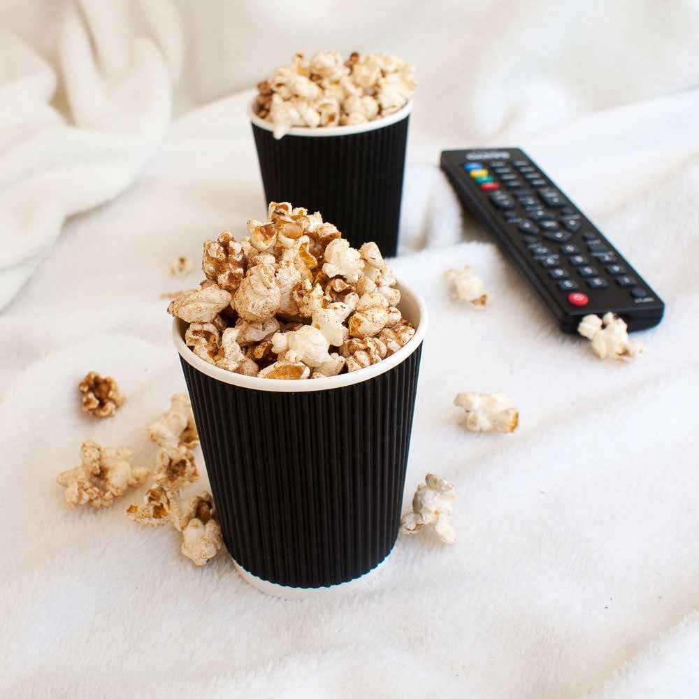 - Tip the popped corn into your container of sugar, clip on the lid and shake to coat all the popcorn in the delicious salty-sweet goodness.