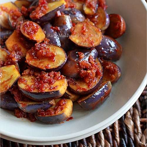 Sambal Eggplant - Aubergine or Brinjal with Malaysian sambal. This eggplant recipe is spicy and so delicious. Serve with steamed rice for a complete meal.
