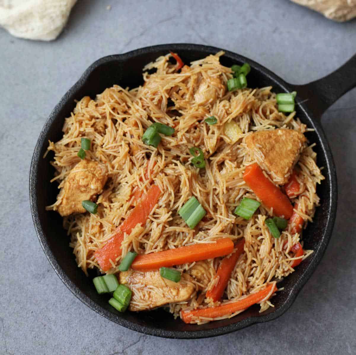 - Dans une casserole séparée, cuire les nouilles vermicelles selon les instructions de leur emballage.
