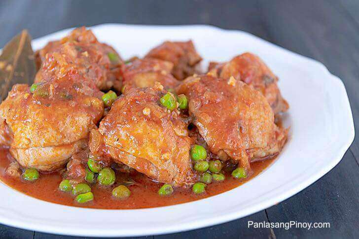 Chicken stewed with tomato and green peas and seasoned with fish sauce for that delicious Umami taste.
