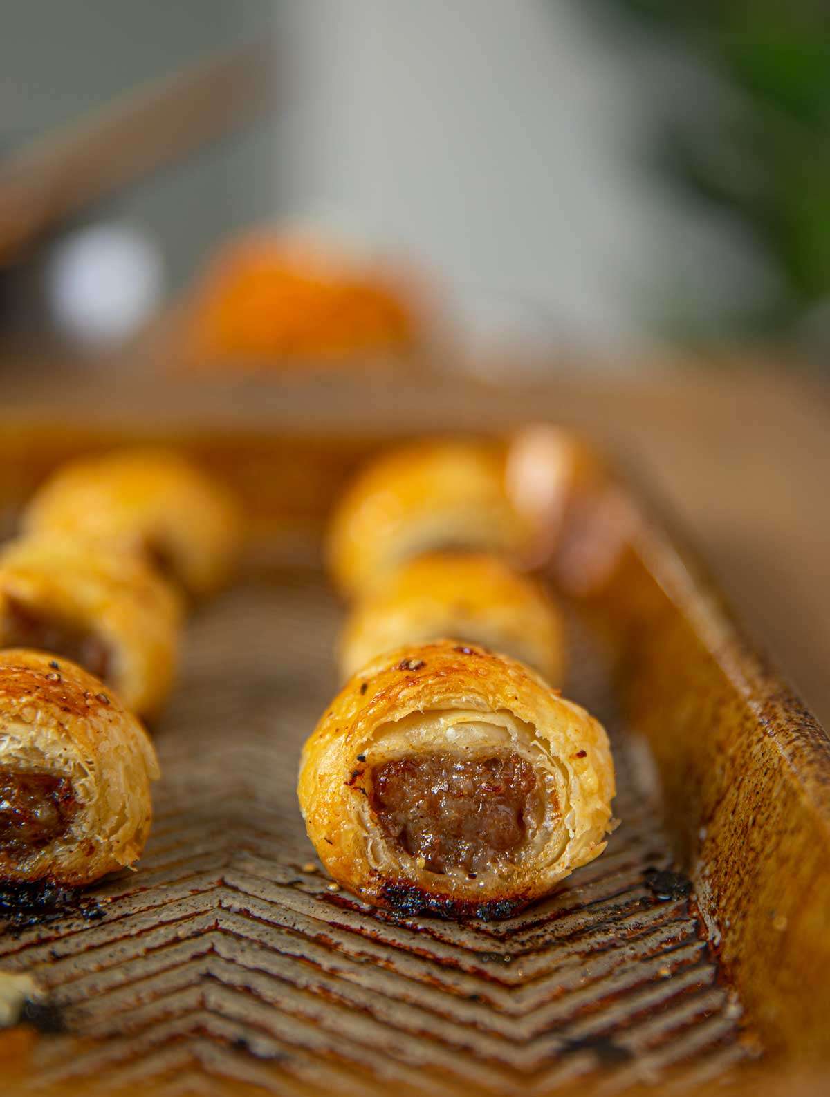 Sausage Rolls are a flavorful classic British dish, easily made into an appetizer. These savory sausage and puff pastry bites are party ready in 30 minutes.