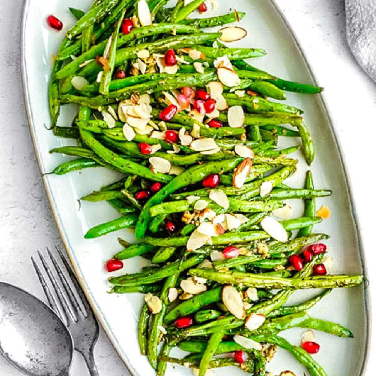 - Finally, transfer the cooked green beans to a serving dish. Garnish with sliced almonds and pomegranate seeds. Enjoy right away.