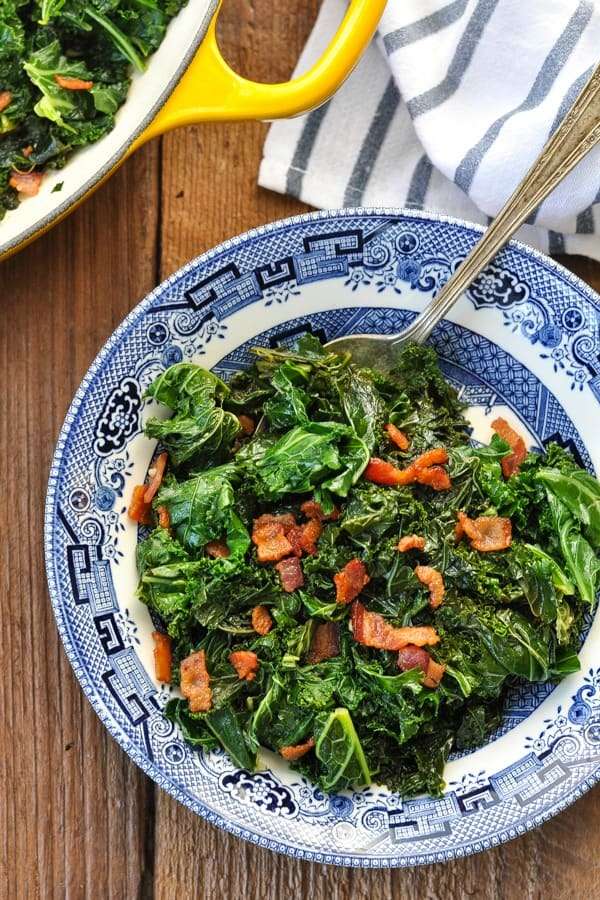 A delicious way to enjoy healthy leafy greens! Sauteed Kale with Bacon is a flavorful, tender and a perfect side dish recipe for just about any meal.