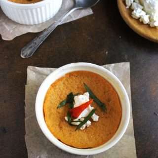 This savory egg custard has tangy roasted red peppers and creamy goat cheese. A healthy, quick and easy side that is sure to impress!
