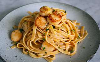 - Leave to simmer for a few minutes making sure the scallops turn golden brown – remove your favourites to be used as garnish when serving.