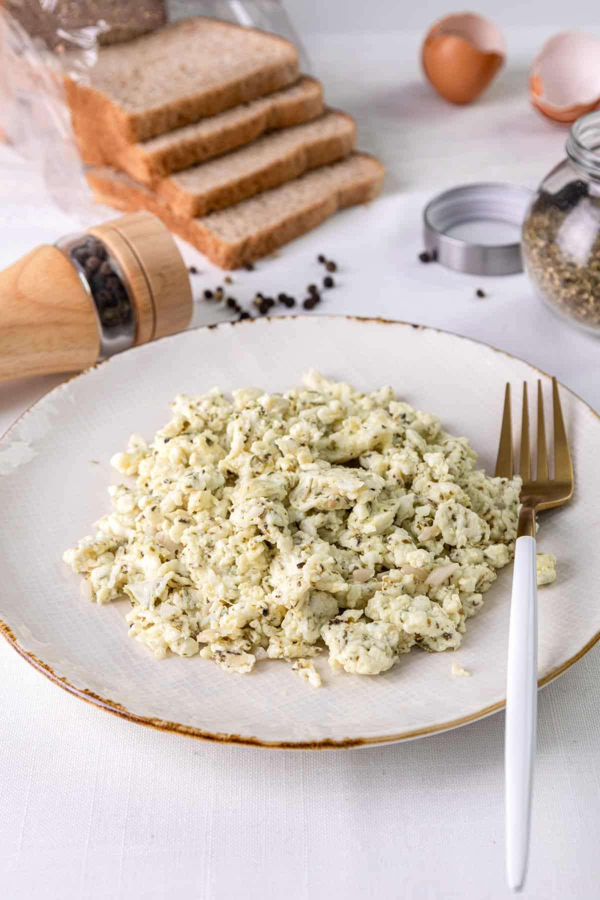 With a sprinkle of common cupboard herbs and spices, this cholesterol-free Scrambled Egg Whites recipe stands on its own—no yolks needed.