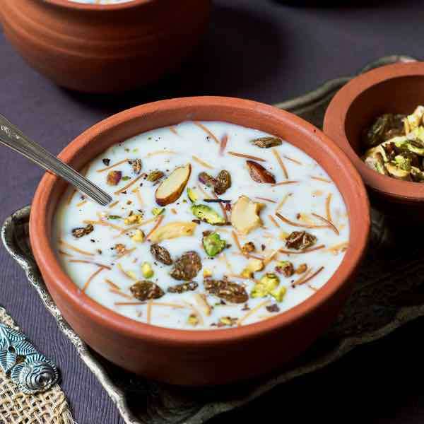 Le semiya payasam est un dessert indien préparé avec des vermicelles cuits dans du lait et garnis de noix de cajou, raisins secs, amandes et pistaches.