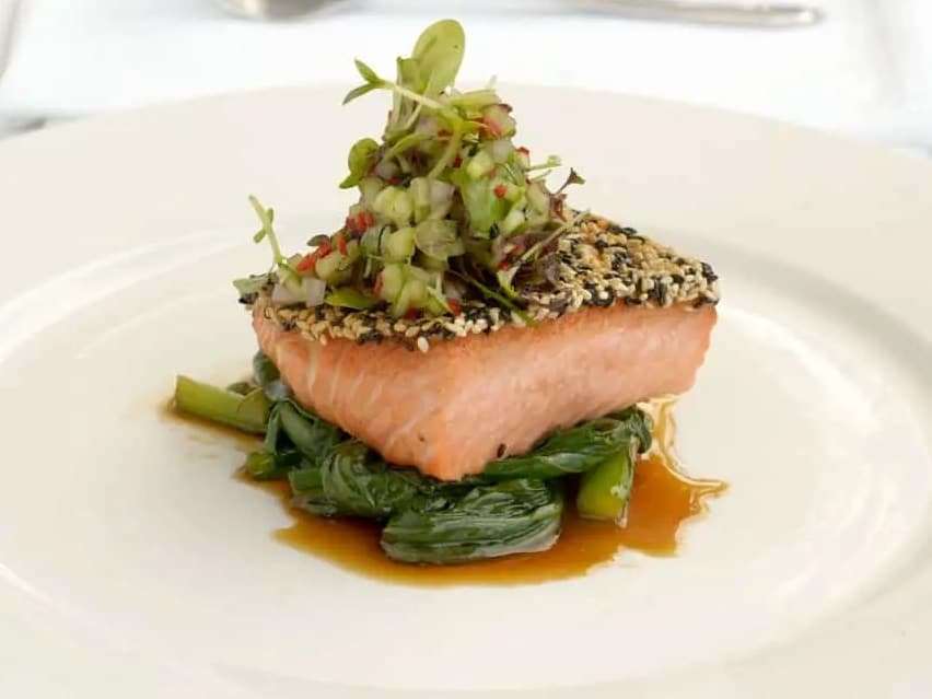 Sesame-Crusted Ocean Trout on Choy Sum & Mirin Vinaigrette