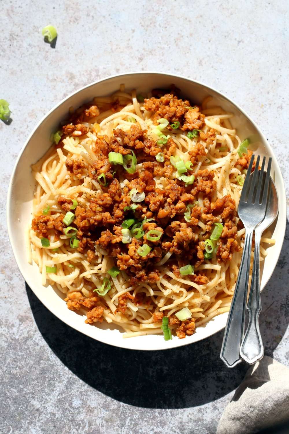 Sesame Noodles with Lemongrass Tempeh Crumbles