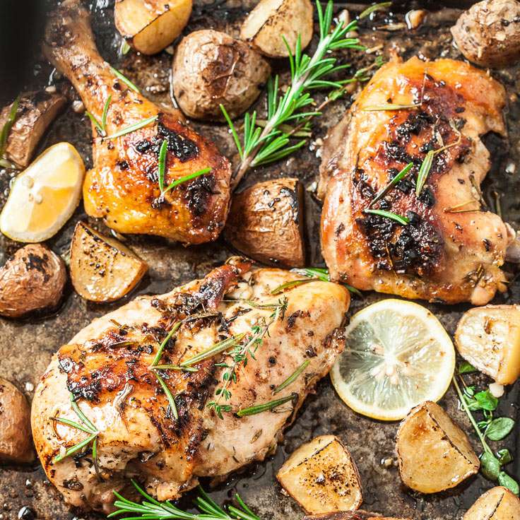 Sheet Pan Roasted Greek Chicken with Garlic Potatoes