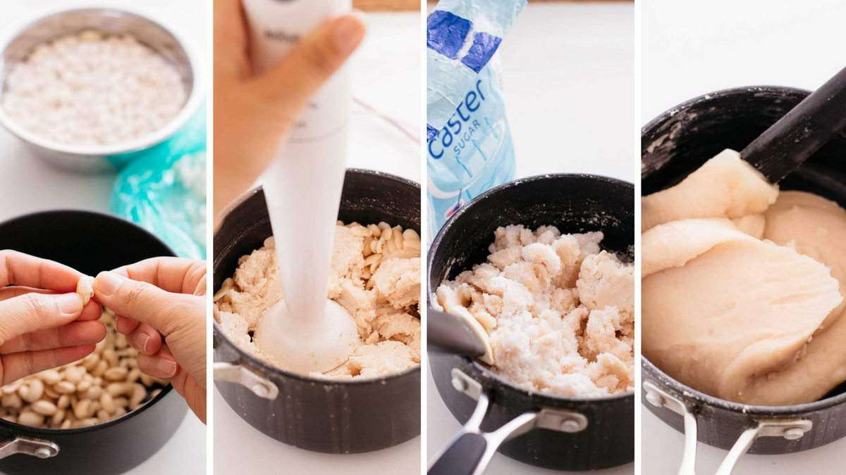 - Place the hulled beans in a saucepan and cover with water and cook for about 1 hour and 30 minutes or until the beans become soft.