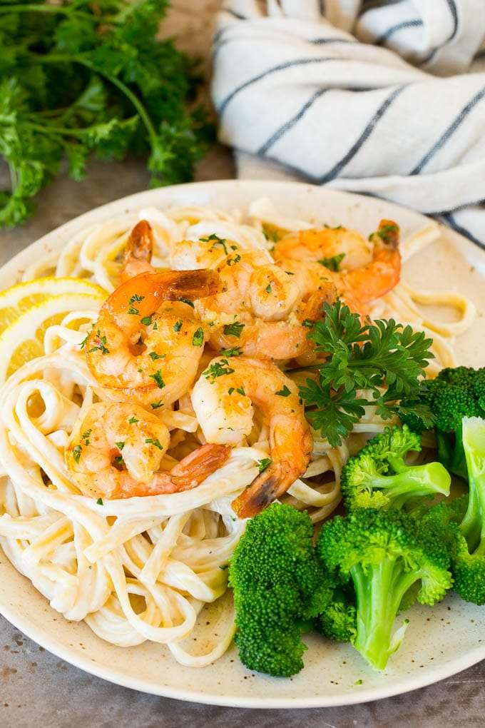 This shrimp linguine is fresh seafood sauteed in garlic butter, then tossed with pasta in a creamy parmesan sauce. A quick and easy dinner option that's quick to make, yet elegant enough for a special occasion.