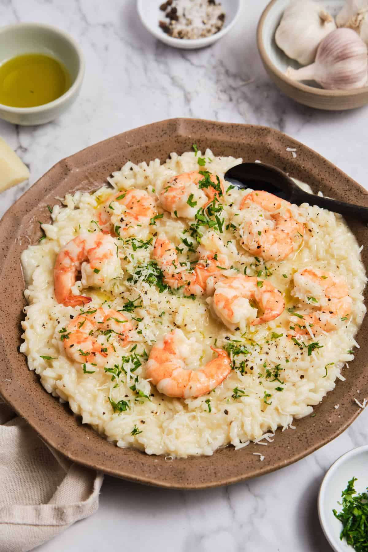 Whether cooking for a dinner party or simply fulfilling a craving, prepare to indulge with this luxuriously creamy shrimp risotto.