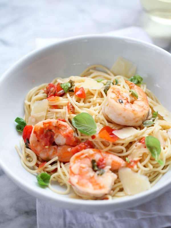 Fresh tomatoes, garlic and basil bring summertime flavors to a classic dinner of Shrimp Scampi Pasta.