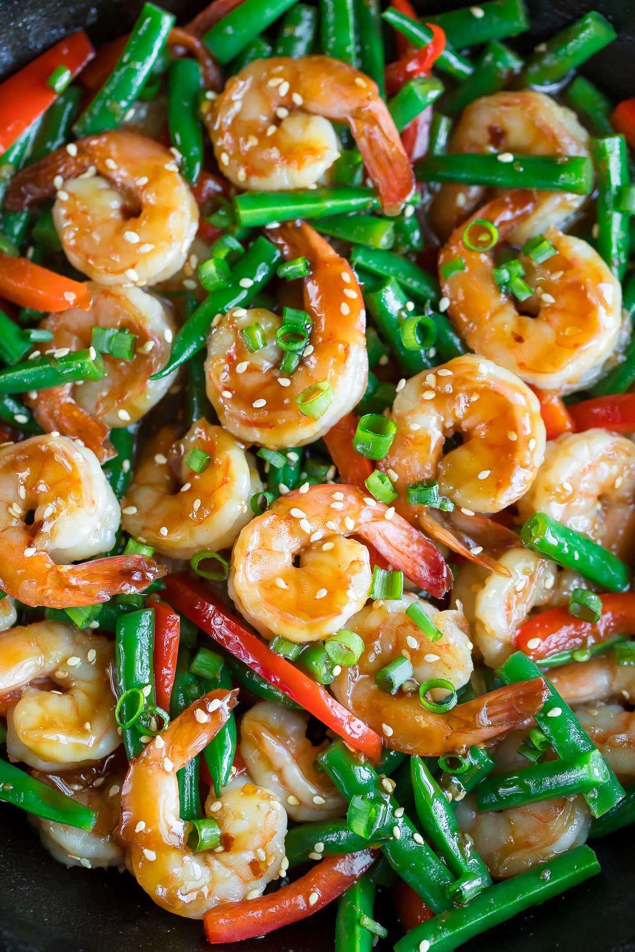 - Return the veggies to the skillet and add sauce. Stir to coat, then cook for a few additional minutes until sauce is hot and the shrimp and vegggies are delicously coated.