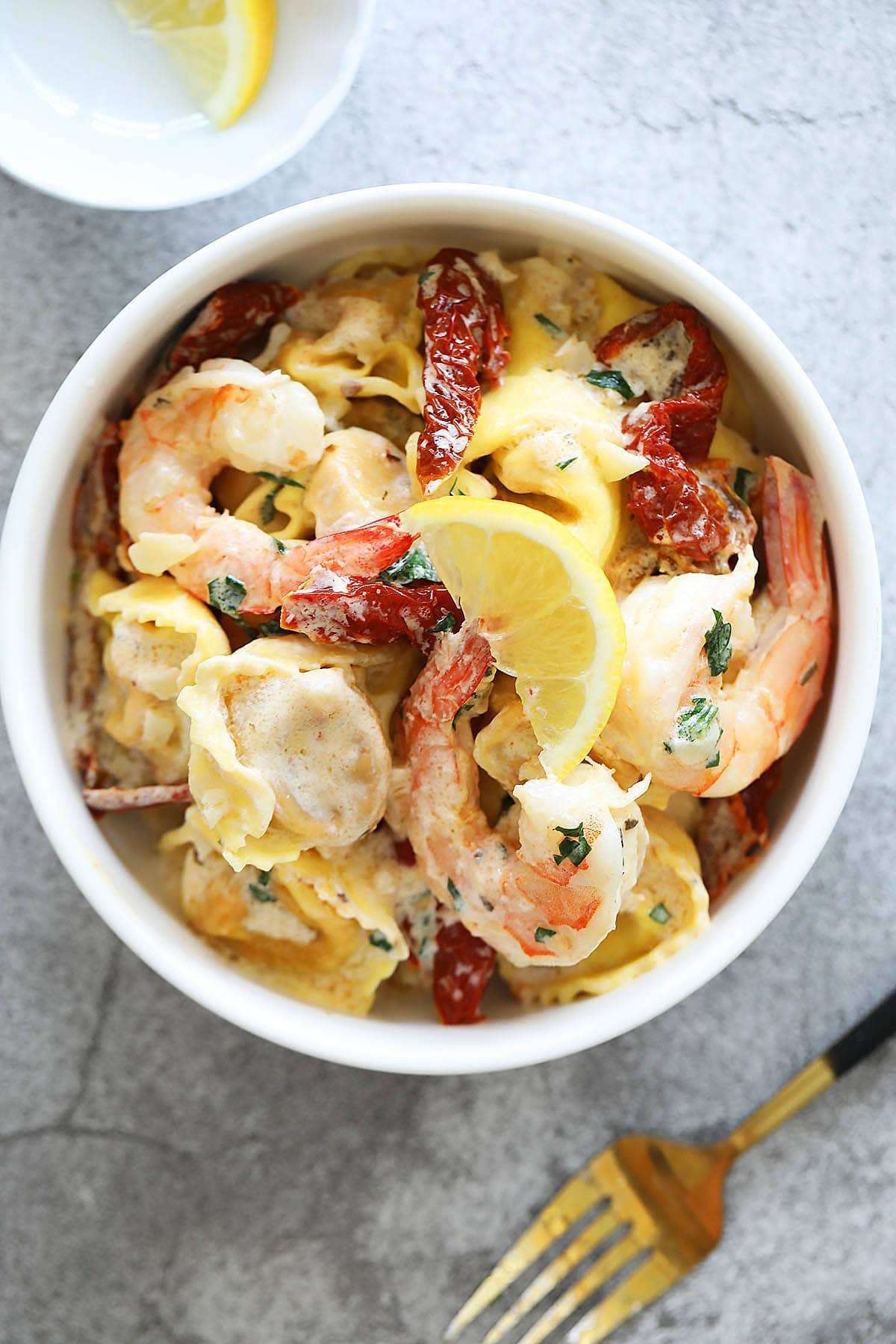 - I squeeze fresh lemon over the garlic shrimp tortellini just before serving. It gives the dish a burst of freshness and helps balance the richness of the sauce.