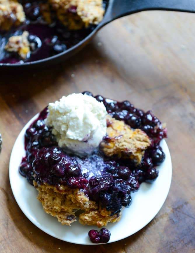 Skillet Blueberry Cobbler with Cheddar Biscuits