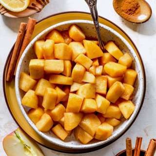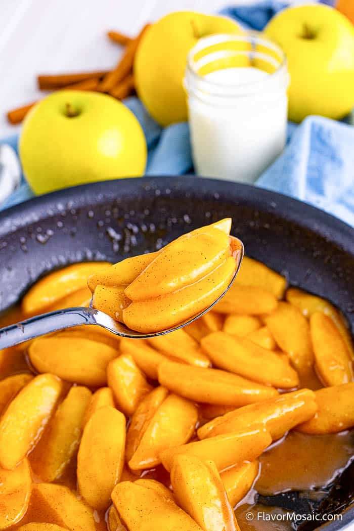 - Add the apples and coat them in the mixture. Place a lid on the pan and bring it to a simmer. Simmer for 15-20 minutes until tender-crisp. Gently stir every few minutes to not break up the apples.