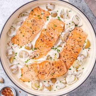 - Season the salmon with ⅛ teaspoon salt and ⅛ teaspoon ground pepper. Heat 1 teaspoon canola oil in a large skillet (preferably cast-iron) set over medium-high heat. Add the salmon (skin side down if it has skin) and cook until the fish is opaque about ¾ of the way up the fish, about 5 minutes. Flip the fish and cook for 2 minutes. Transfer to a plate. When cool enough to handle, break up into pieces.