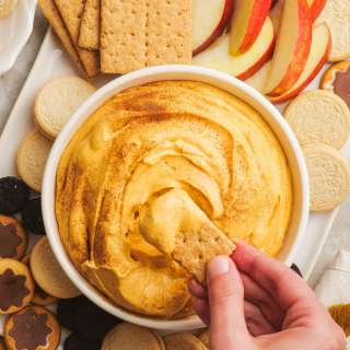 This pumpkin pie dip is a healthier treat that you can make in less than 5 minutes. Serve it alongside pretzels, gingersnaps, graham crackers, and more!