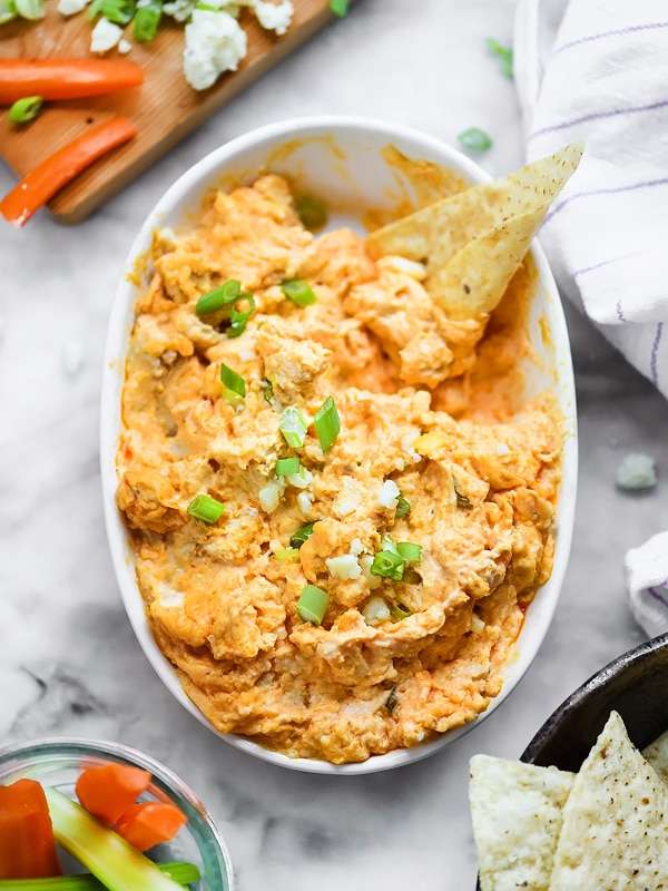 This slow cooker buffalo chicken dip is easy, creamy, ultra cheesy, and loaded with awesome buffalo chicken flavor for a crowd-pleasing appetizer.