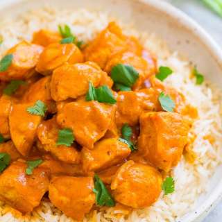 This slow cooker dairy-free butter chicken is a lightened-up take on a classic Indian dish. Chicken breasts are cooked to juicy perfection in a creamy coconut milk and tomato sauce that's packed with flavor.