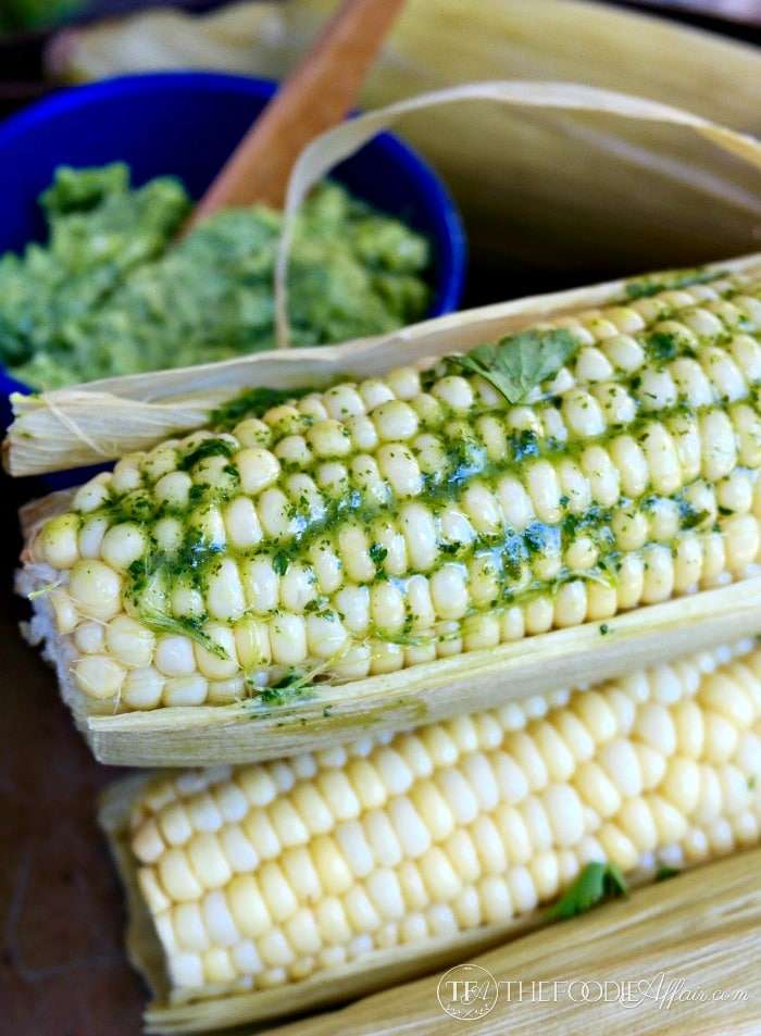 Perfectly cooked tender corn on the cob served with a cilantro lime butter.