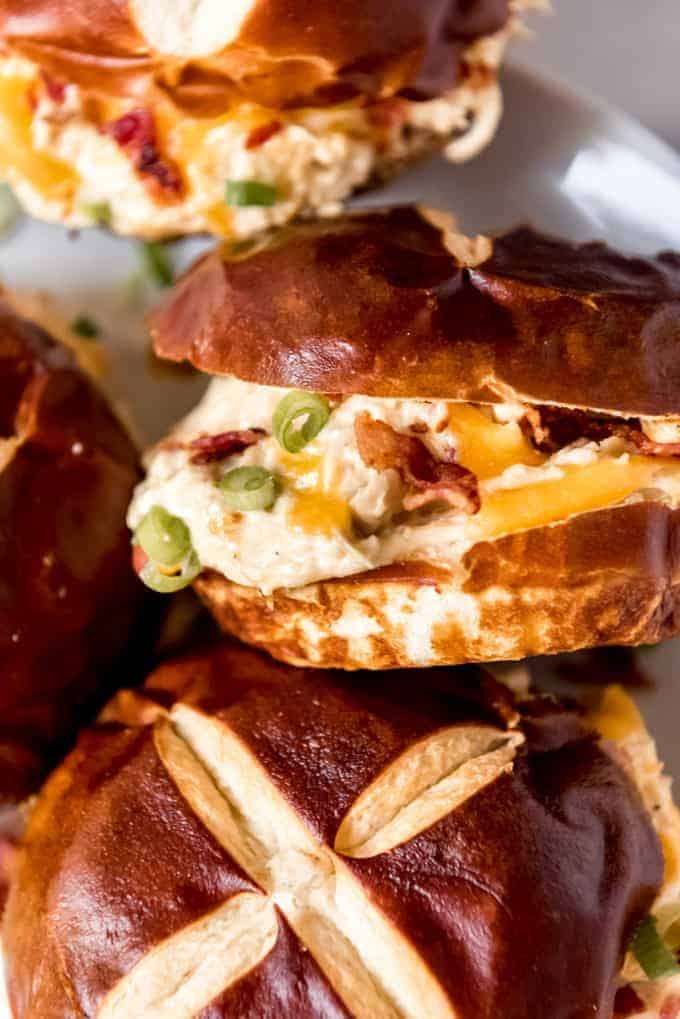 Creamy and super satisfying with crunchy bits of bacon, melted cheese, and tender shredded chicken in a ranch sauce, this Slow Cooker Crack Chicken is just the thing to serve your family on busy weeknights! It's a dump and go slow cooker recipe that you can start earlier in the day and have ready to pile on pretzel buns for sandwiches at night!