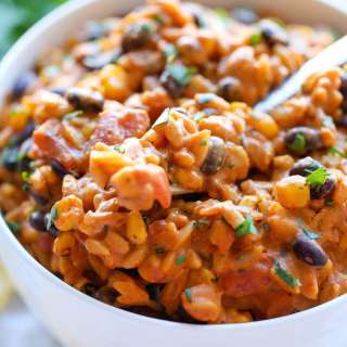 The best kind of comfort food you can make right in your crockpot! Even the uncooked orzo cooks in the slow cooker!