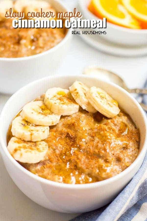 Slow Cooker Maple Cinnamon Oatmeal is perfect for busy mornings! Take a few minutes to prep the night before and a creamy, rich, flavorful oatmeal is waiting for you in the morning!