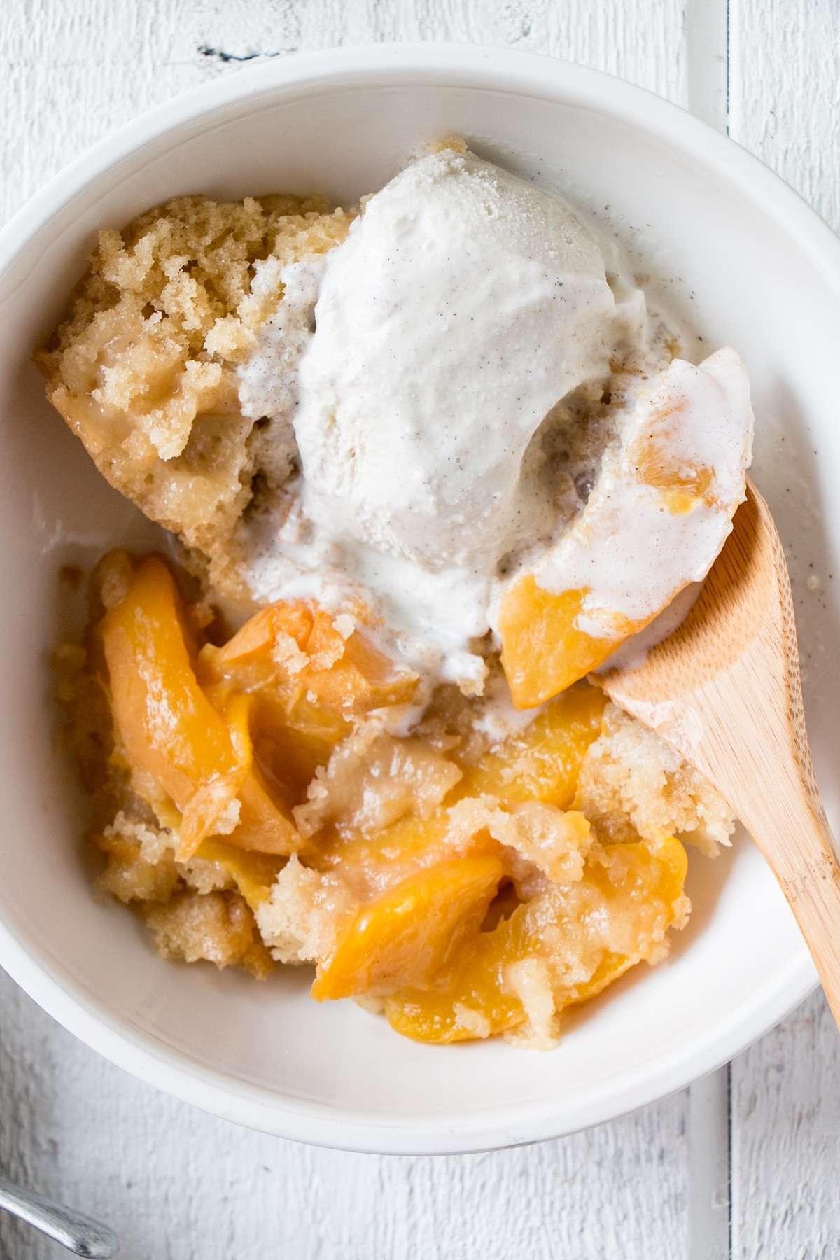 Easy and quick to prepare Slow Cooker Peach Cobbler recipe! Packed with juicy, sweet peaches and has a spongy cake topping.