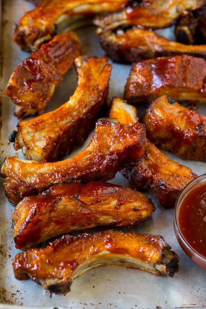 - Remove the ribs from the slow cooker and place on a sheet pan coated with cooking spray. Preheat broiler.