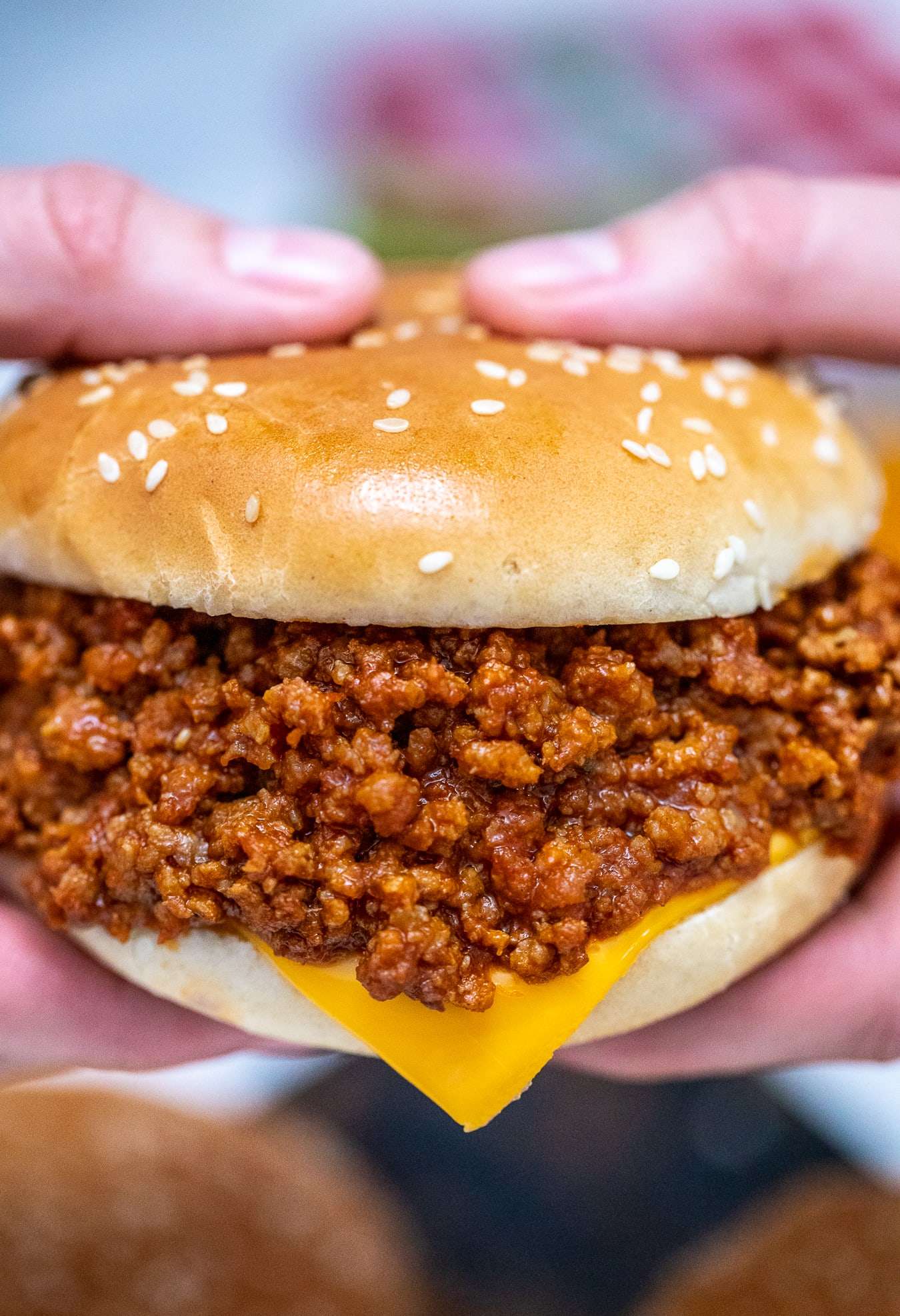 Slow Cooker Sloppy Joes are every child's favorite comfort food and are a true classic! They are made with ground beef, in a flavorful tomato sauce, and served on hamburger buns with a slice of cheese.
