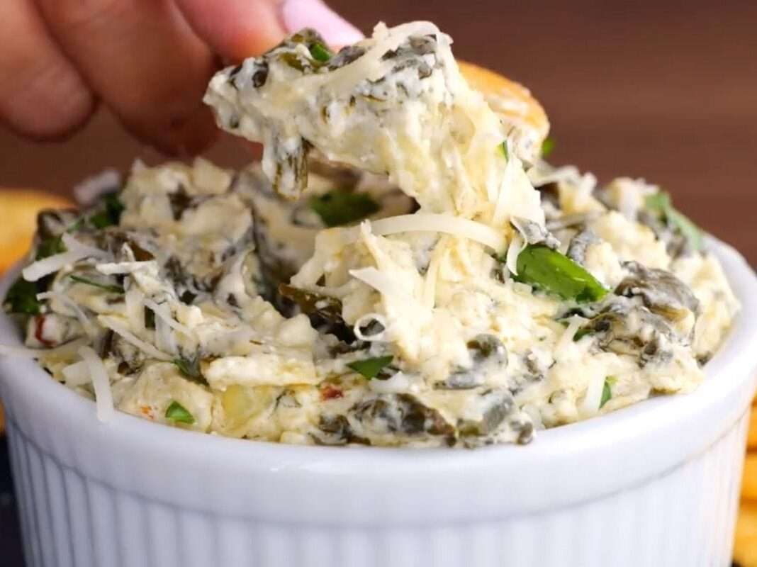 Slow Cooker Spinach Artichoke Dip is easy and addicting! Made with cream cheese, fresh spinach and artichoke hearts, perfect for your party it stays warm the whole time.