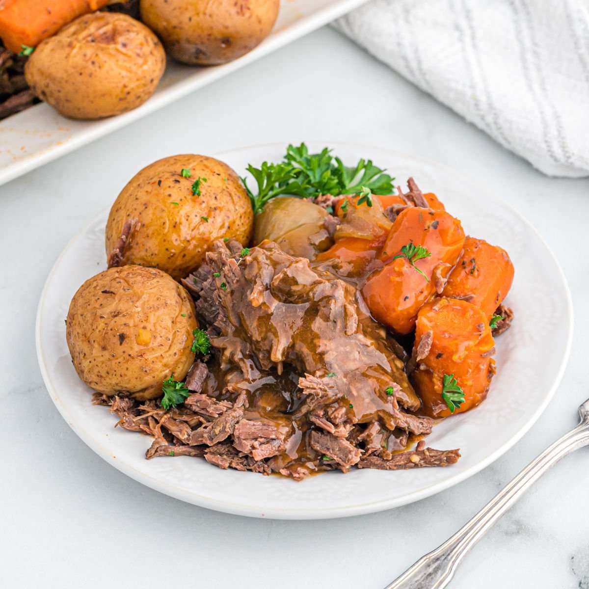 - *You can cook this recipe on low or high but we prefer to cook this crock pot chuck roast recipe on low as the beef is more tender.