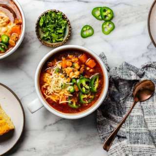 - Place chicken into a 6-qt slow cooker. Stir in chicken stock, green chiles, beans, onion, garlic, cumin and oregano; season with salt and pepper, to taste.