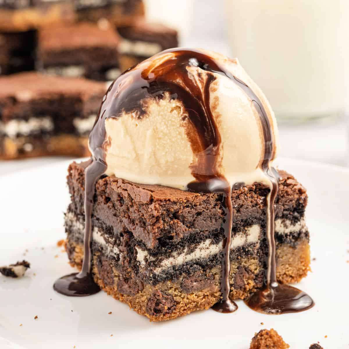 Slutty Brownies are the dessert version of pure indulgence. Made on a cookie dough base with a layer of your favorite Oreos, this dish is topped with a generous layer of brownie batter. What’s not to love?