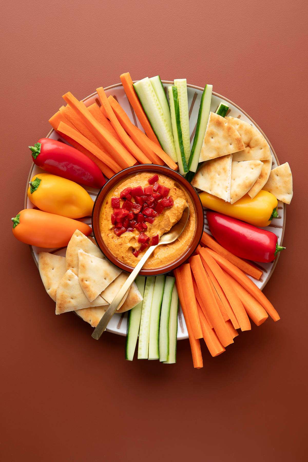 - Serve with your favorite hummus dippers! Some of my favorites are carrot sticks, cucumber sticks, pita wedges, sweet mini peppers or pepper slices, celery sticks, broccoli, and cauliflower.