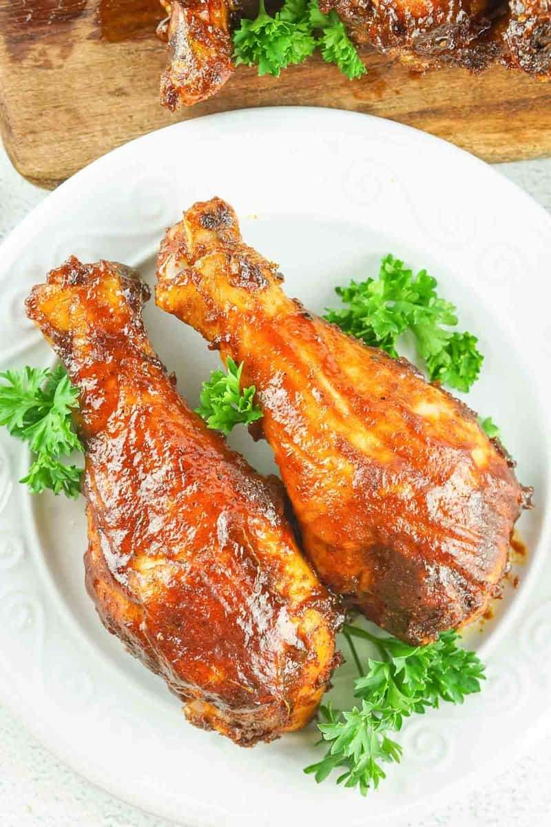 BBQ smoked chicken drumsticks are a delicious dinner.