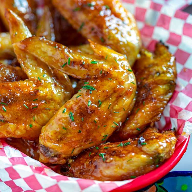 These Grilled Honey Garlic Chicken Wings get seasoned then in the smoker they go. Basted with a spicy honey garlic sauce, these are finger licking good and will be the hit of the party! Adapted from a Traeger recipe.